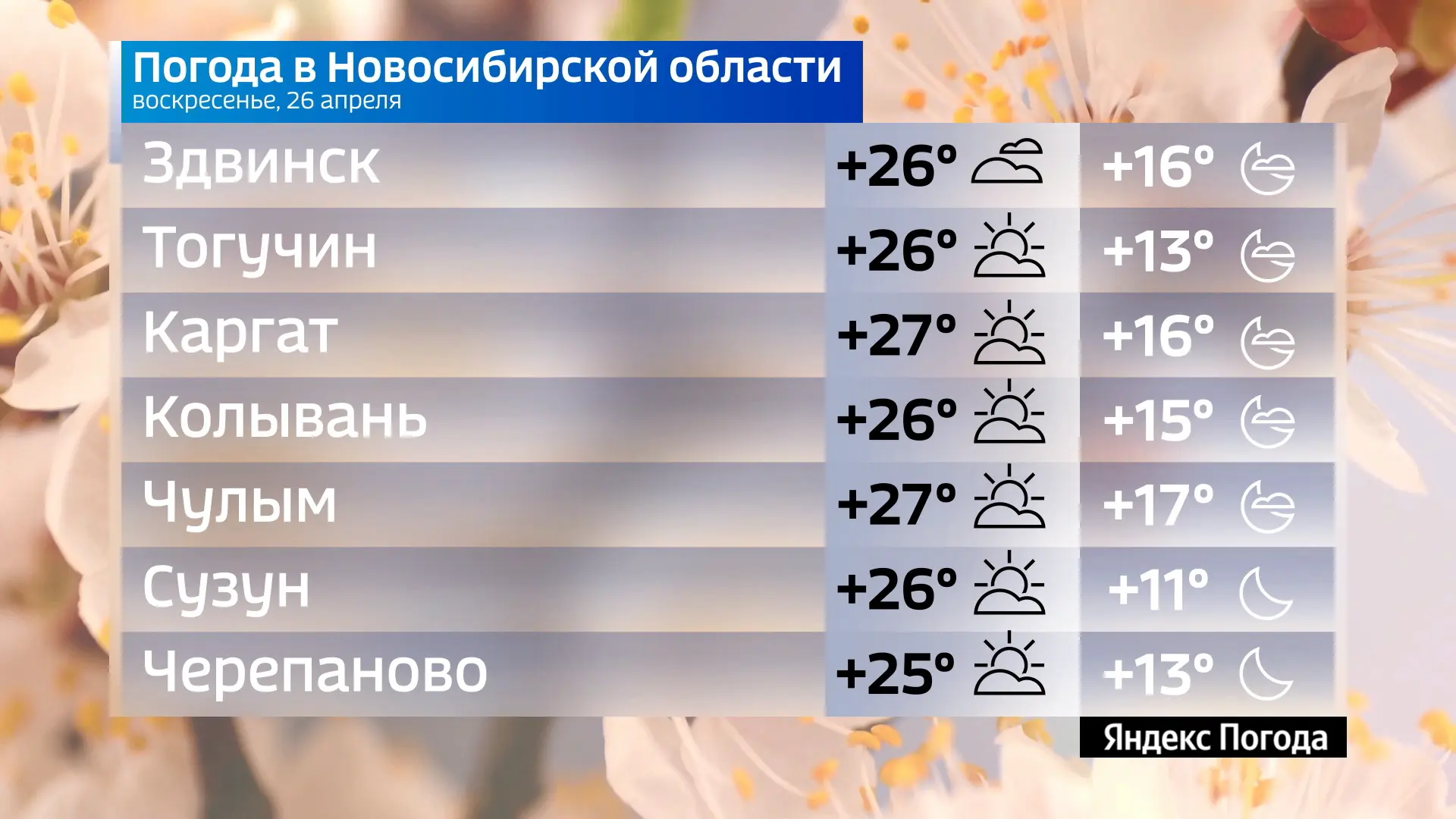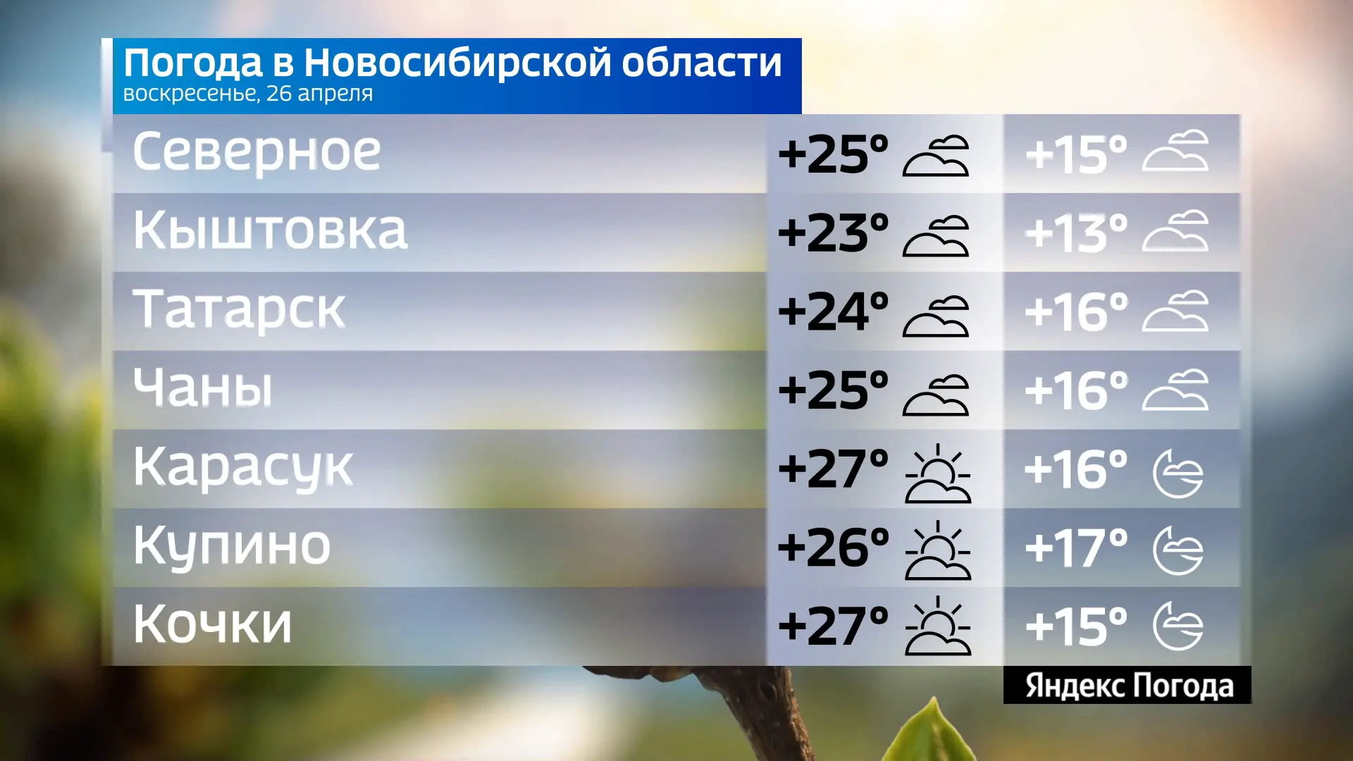 Прогноз погоды на 26 апреля 2026 года в Новосибирской области.