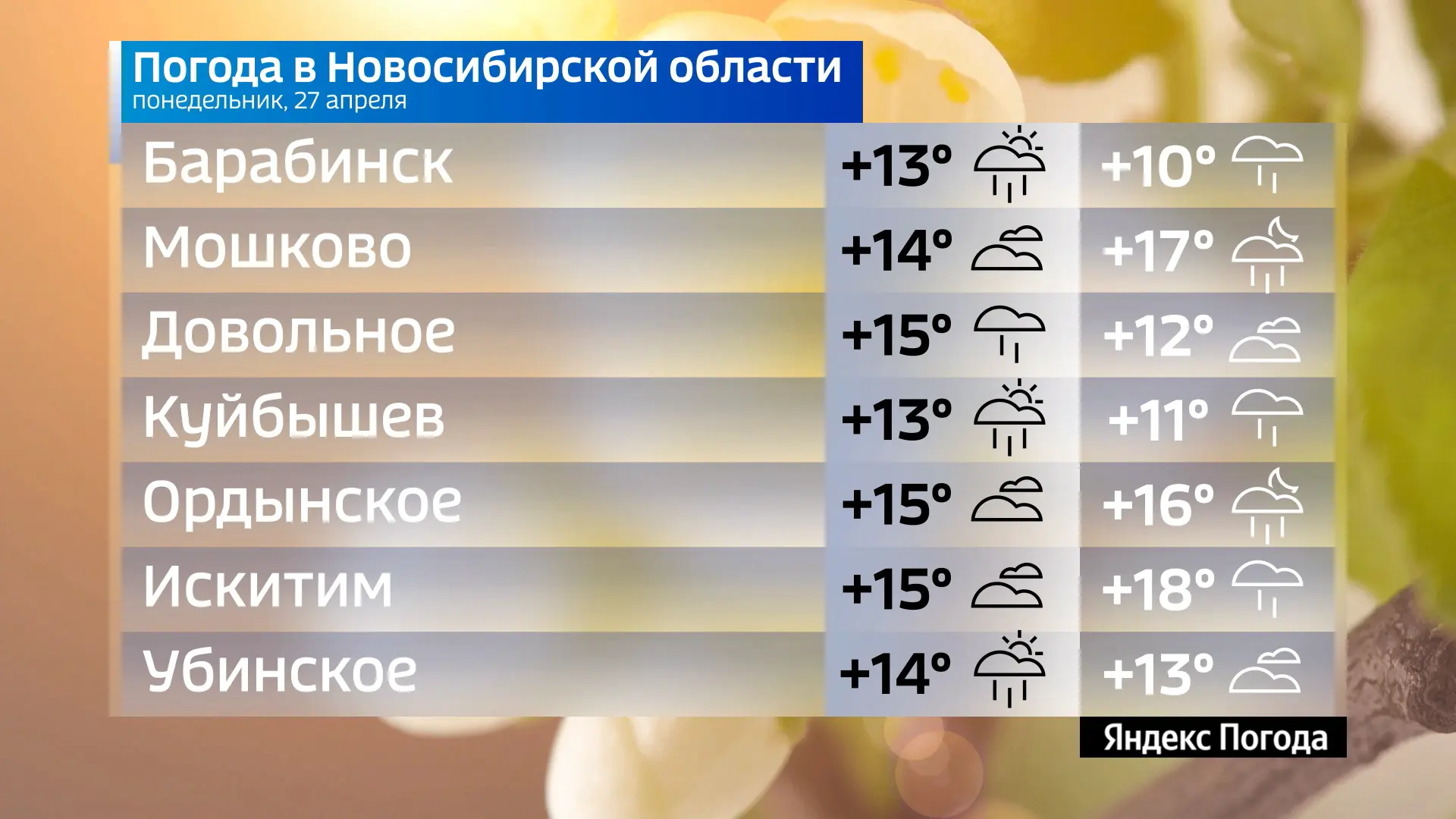 Прогноз погоды на 27 апреля 2026 года в Новосибирской области.