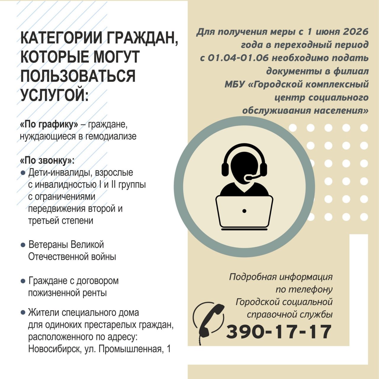 С 1 апреля по 1 июня 2026 года в Новосибирске переходят на обновленный порядок предоставления услуги социального такси. Оператором услуги выступает Агентство развития социальной политики департамента по социальной политике мэрии Новосибирска.