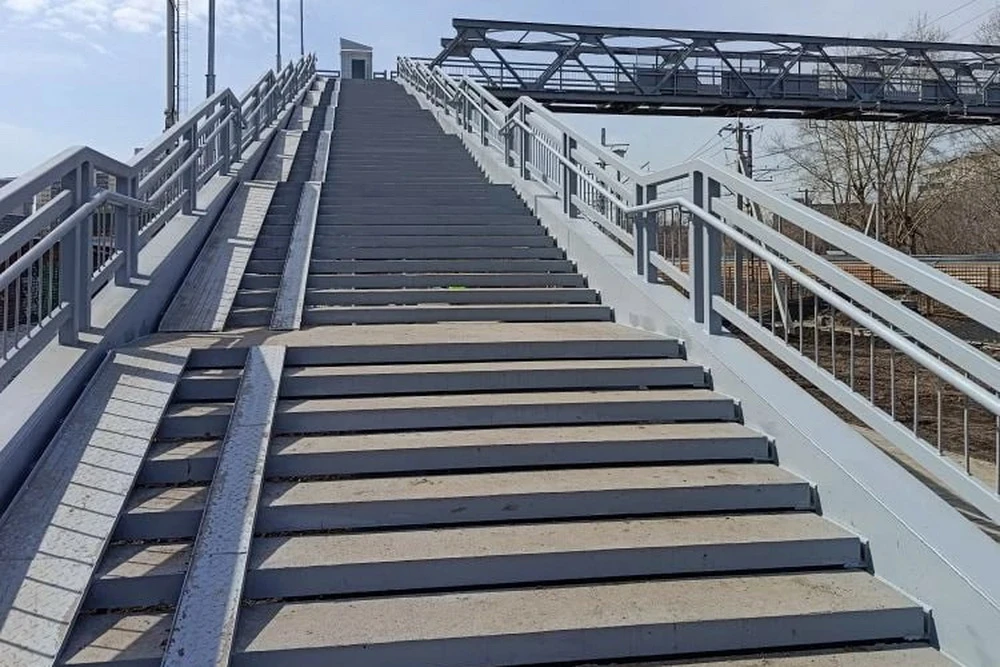 Пешеходный мост через Транссиб обработали антискользящим покрытием