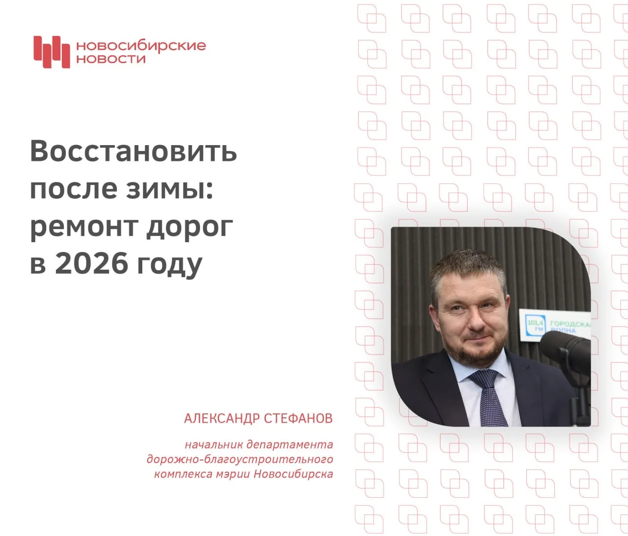 В этом году в Новосибирске планируют отремонтировать 34 участка дорог протяжённостью около 38 км. На каких улицах заменят асфальт? Когда стартуют масштабные дорожные работы? И как будут контролировать качество ремонта? Об этом в прямом эфире поговорим с начальником департамента дорожно-благоустроительного комплекса мэрии Александром Стефановым.