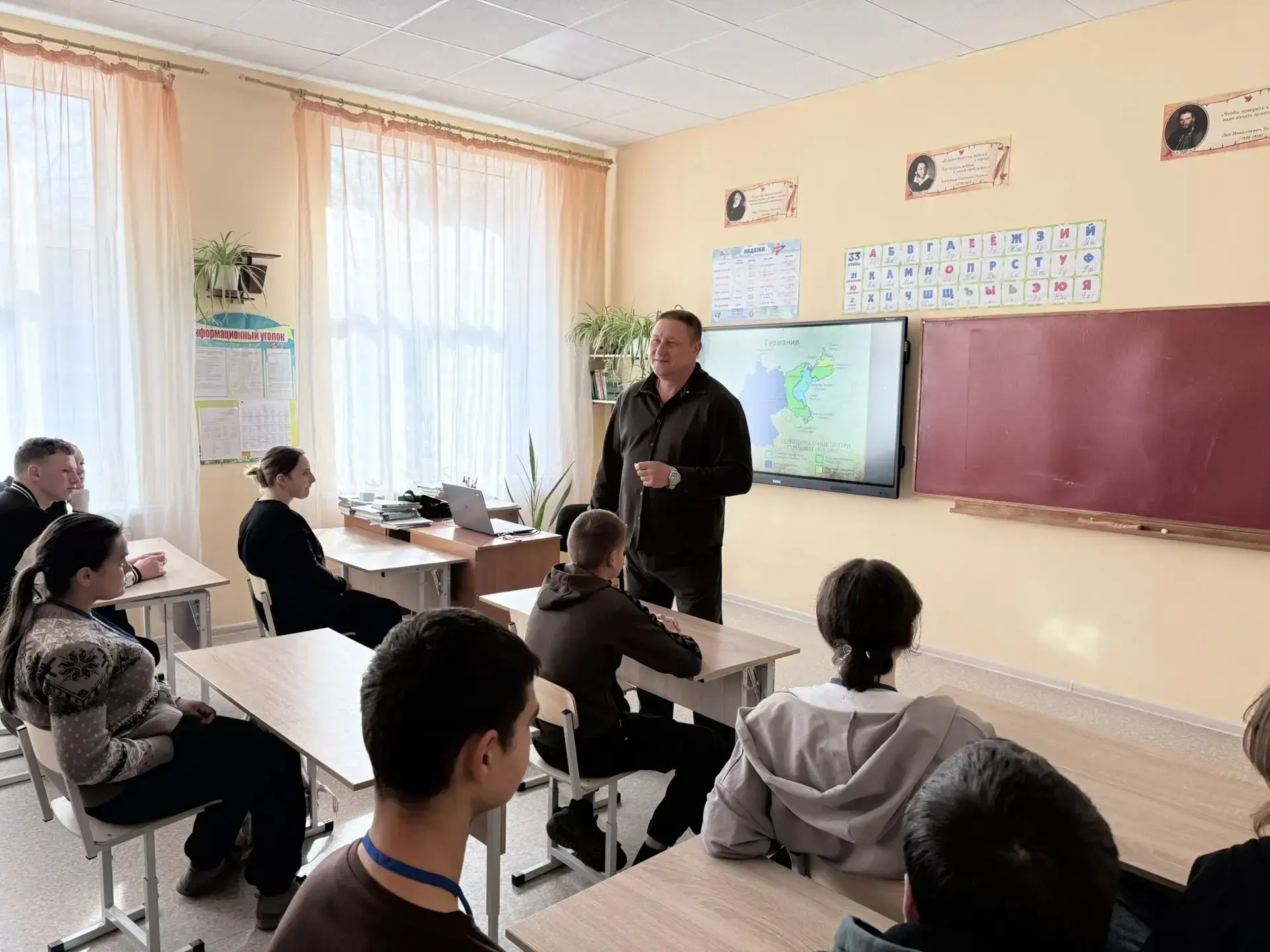 29 апреля, в преддверии великого праздника – Дня Победы, в Алексеевской школе состоялось важное мероприятие. Начальник отдела молодежной политики администрации Генического округа Дмитрий Демченко провел для учащихся старших классов занятие по истории Великой Отечественной войны.