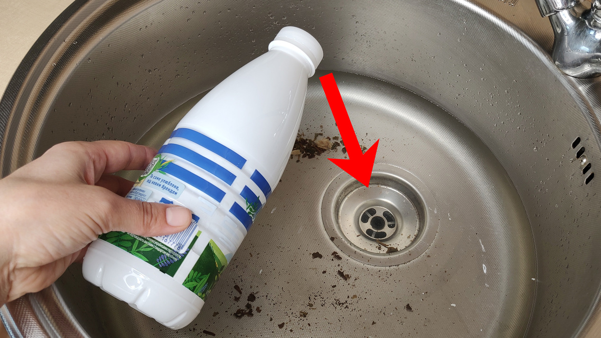 Для начала потребуется обычная пластиковая бутылка. Она может быть из-под молока, кефира, минеральной воды или любого другого напитка. Главное — чтобы ее диаметр соответствовал диаметру сливного отверстия.